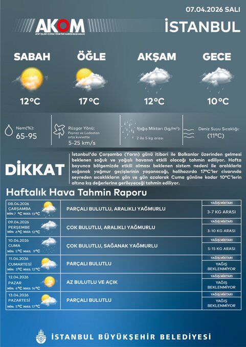 AKOM’un haftalık hava tahmini ise şöyle: